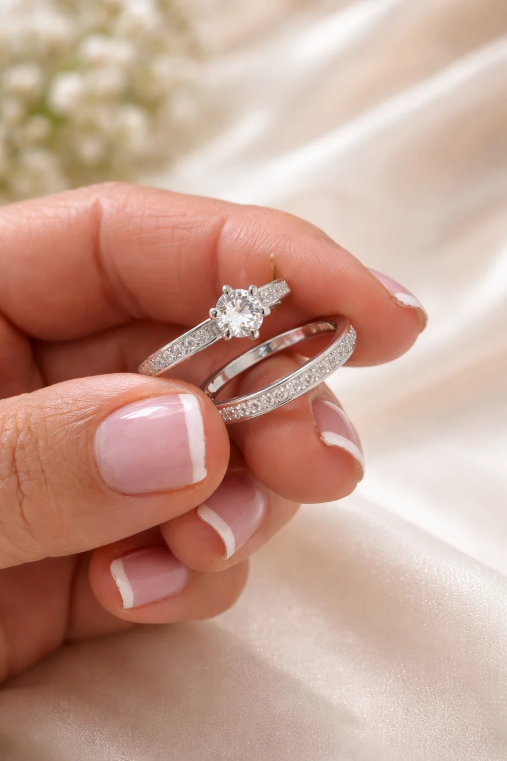 El anillo Dúo Luma está elaborado en plata de ley 925 rodiada, un acabado que aporta mayor brillo, durabilidad y resistencia al desgaste, evitando la oxidación y manteniendo su apariencia impecable con el paso del tiempo.
