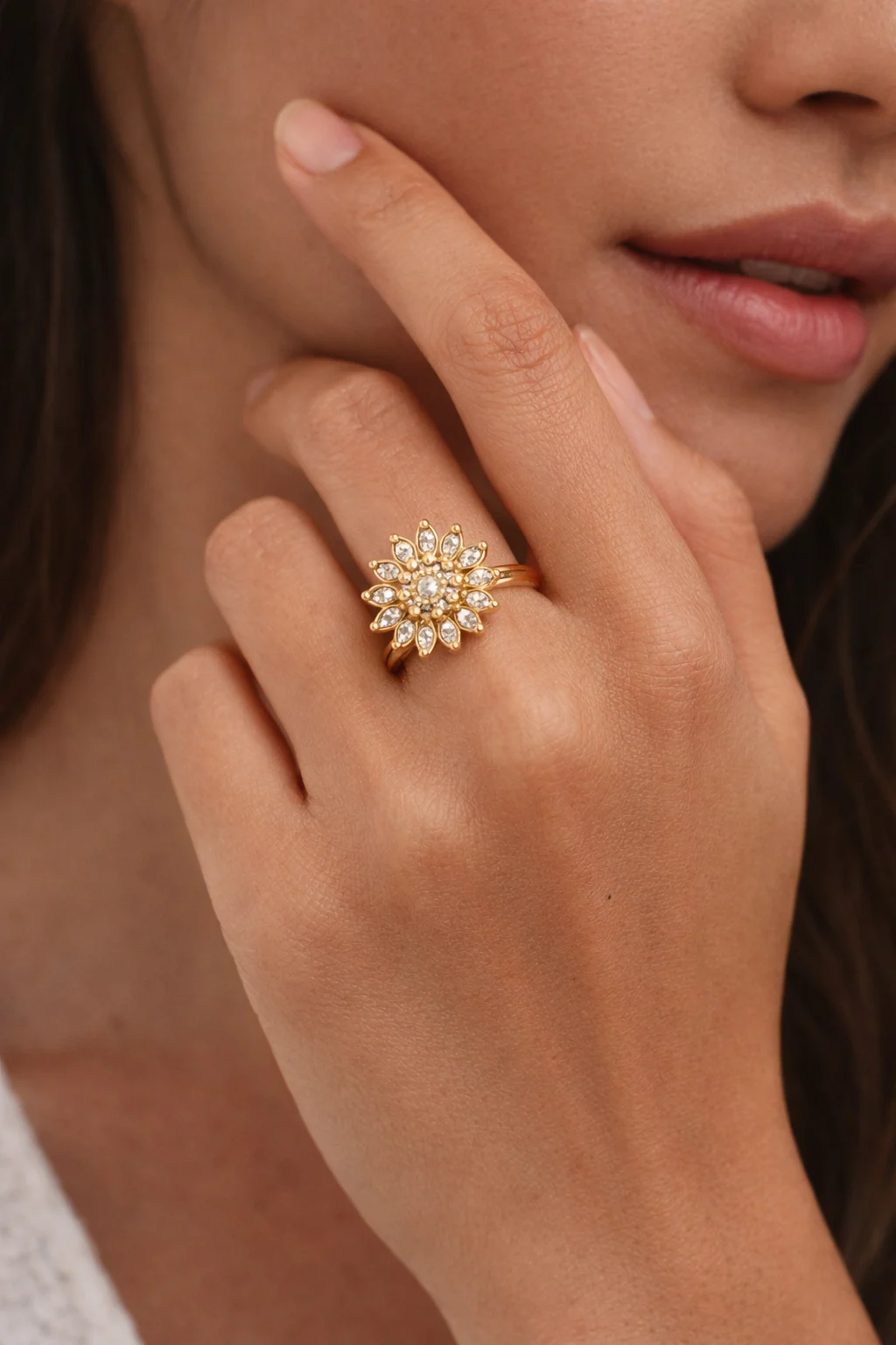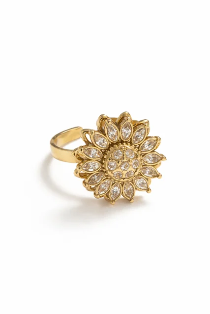 El Anillo Girasol Antiestrés de Inaya Complementos es una joya especial que combina diseño y bienestar. Inspirado en la forma del girasol, su delicado diseño floral está decorado con circonitas que aportan brillo y elegancia.