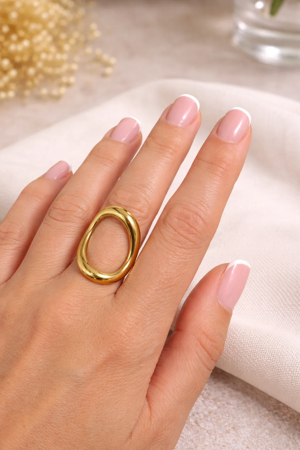 Su forma abierta y estructura envolvente lo hacen especialmente cómodo, adaptándose al dedo con ligereza y estilo.