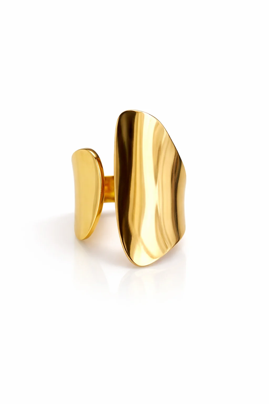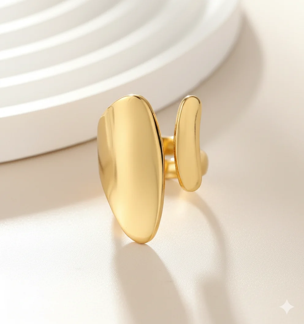- Anillo Orbe Dorado y Plateado, ajustable, de diseño orgánico y volumen suave.