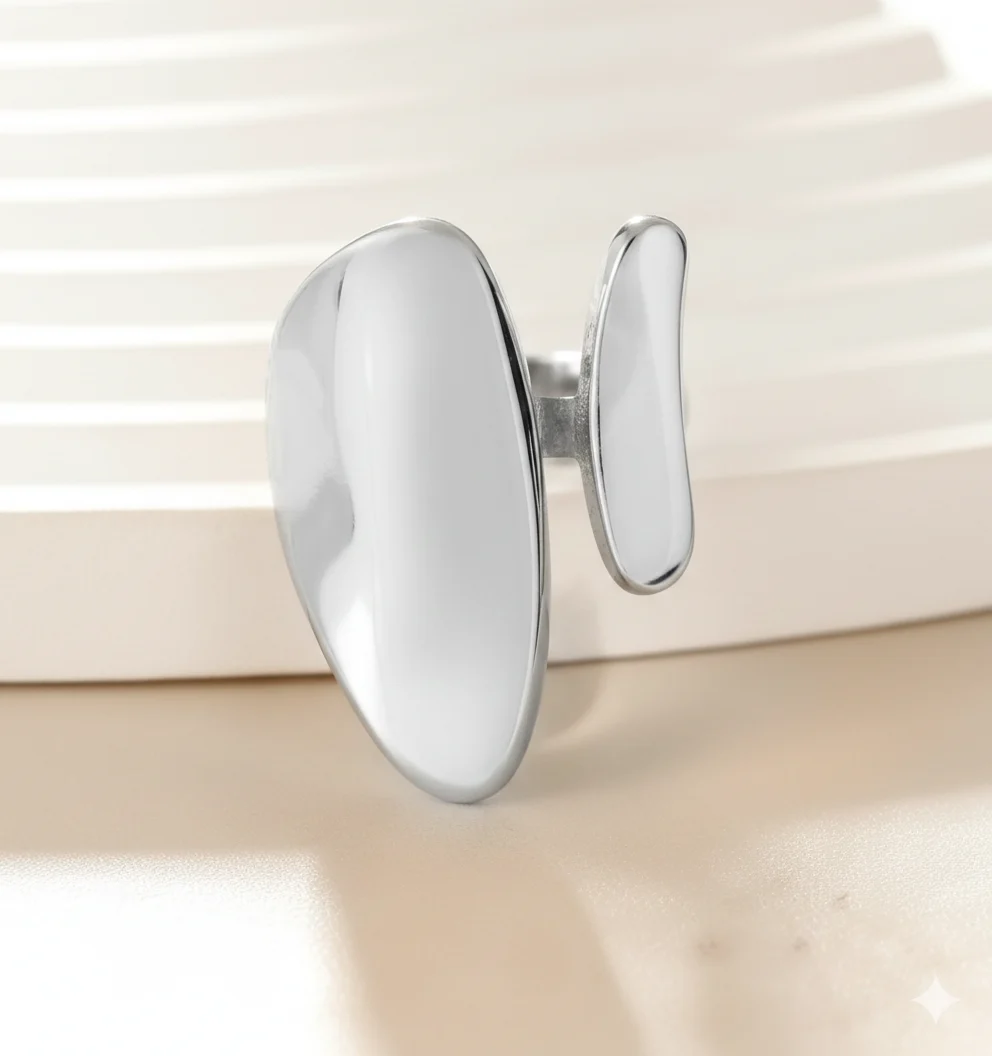 El Anillo Orbe Dorado y Plateado es una joya que destaca por su diseño orgánico y su volumen suave, lo que la convierte en una pieza escultórica que combina modernidad y elegancia. Su forma fluida aporta un efecto visual armonioso que envuelve el dedo con un estilo sofisticado y contemporáneo.