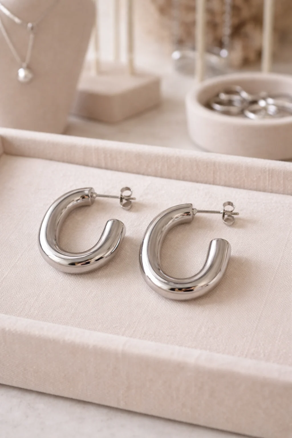 Fabricados en acero inoxidable de alta calidad, los Aros Alba están diseñados para ofrecer resistencia y durabilidad. Este material permite que los pendientes mantengan su brillo y su forma con el paso del tiempo, incluso con el uso frecuente.