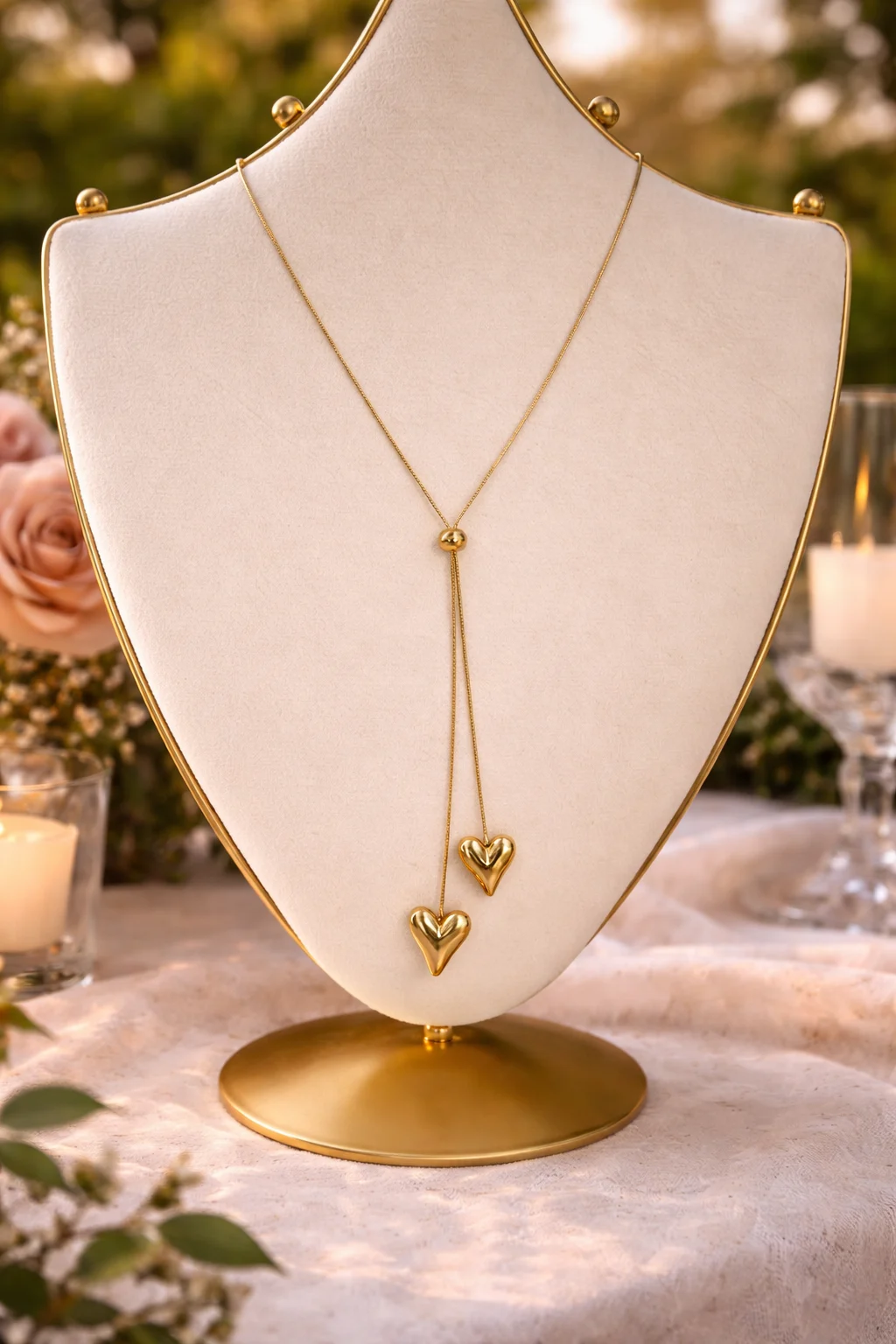 • Diseño: collar en Y con doble corazón