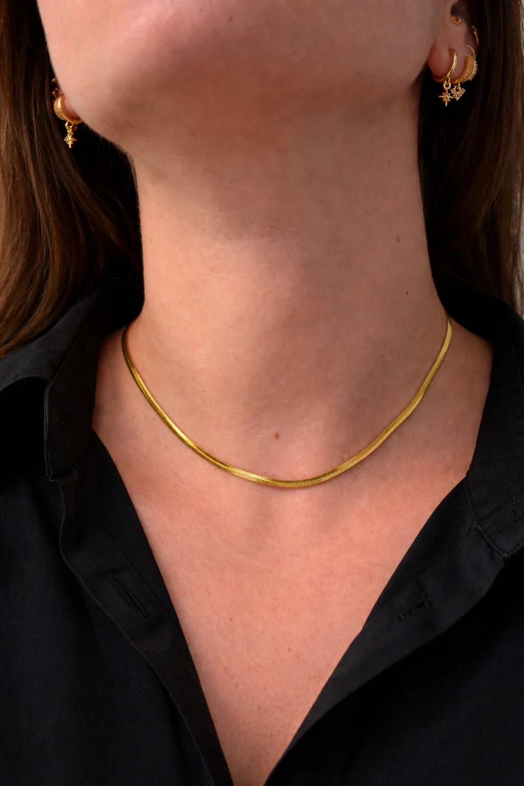 La cadena plana aporta un toque moderno y sofisticado, reflejando la luz de forma sutil y realzando el colgante con un brillo delicado. Este detalle convierte el collar en una pieza elegante que destaca sin resultar excesiva, perfecta para quienes buscan un accesorio con personalidad y significado.