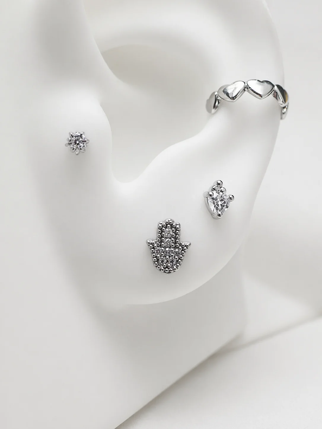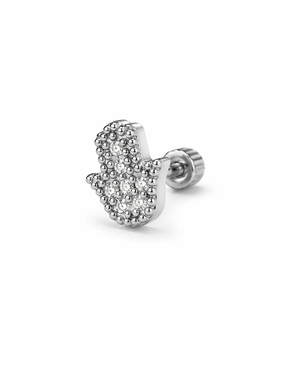 Piercing Nexa Hamsa en forma de mano de Fátima en acero inoxidable 316L con circonitas.