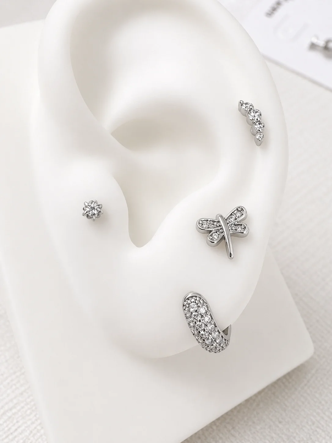 El piercing Nexa Libelle está inspirado en la delicadeza y ligereza de la libélula, símbolo de transformación y equilibrio. Su diseño fino, con circonitas cuidadosamente engastadas, crea un brillo sutil que aporta luz y elegancia a cualquier composición de piercings.