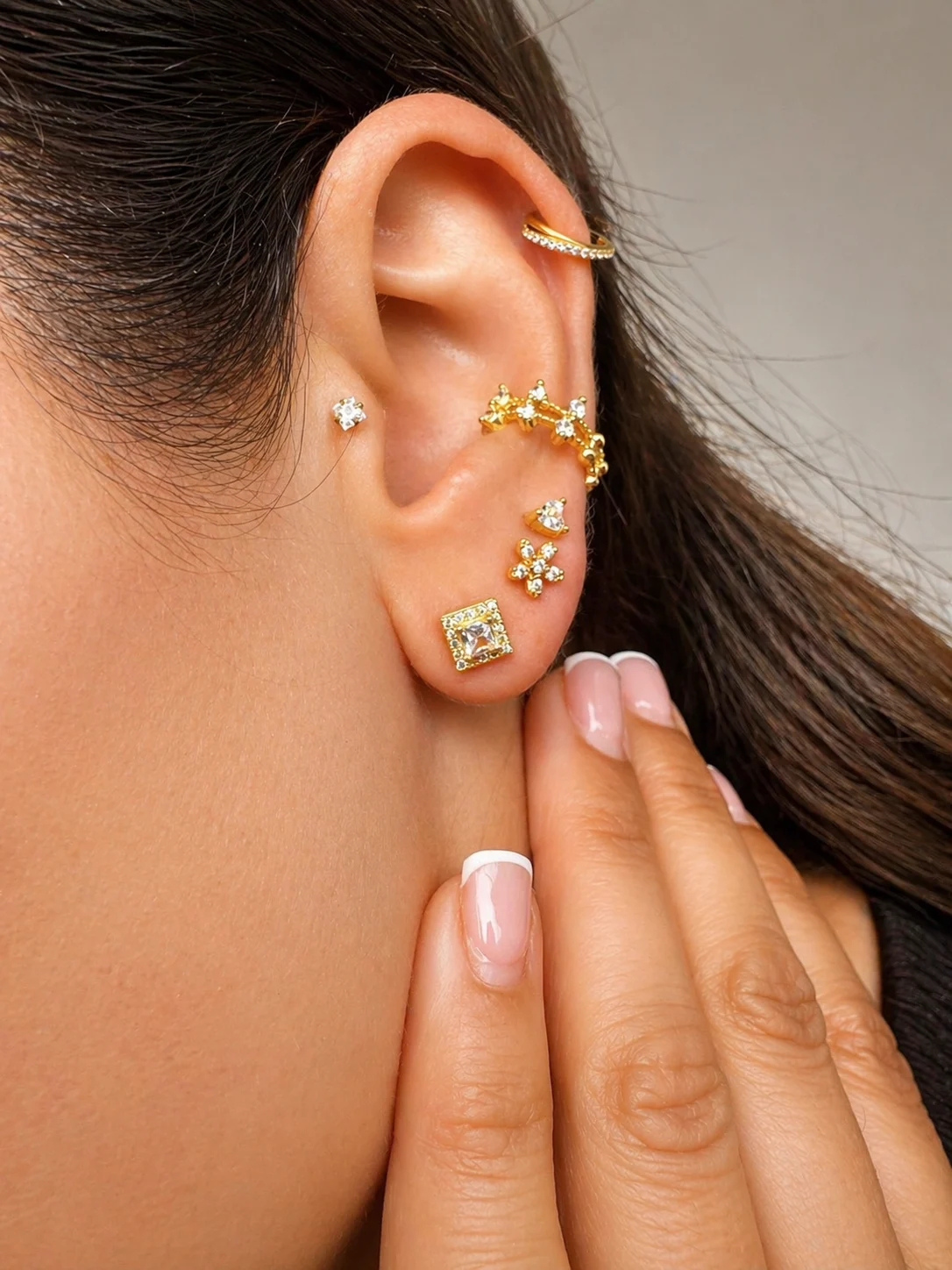 Cada detalle ha sido pensado para aportar sofisticación en un formato discreto, ideal tanto para quienes buscan una pieza protagonista sutil como para quienes aman las combinaciones en oreja múltiple.