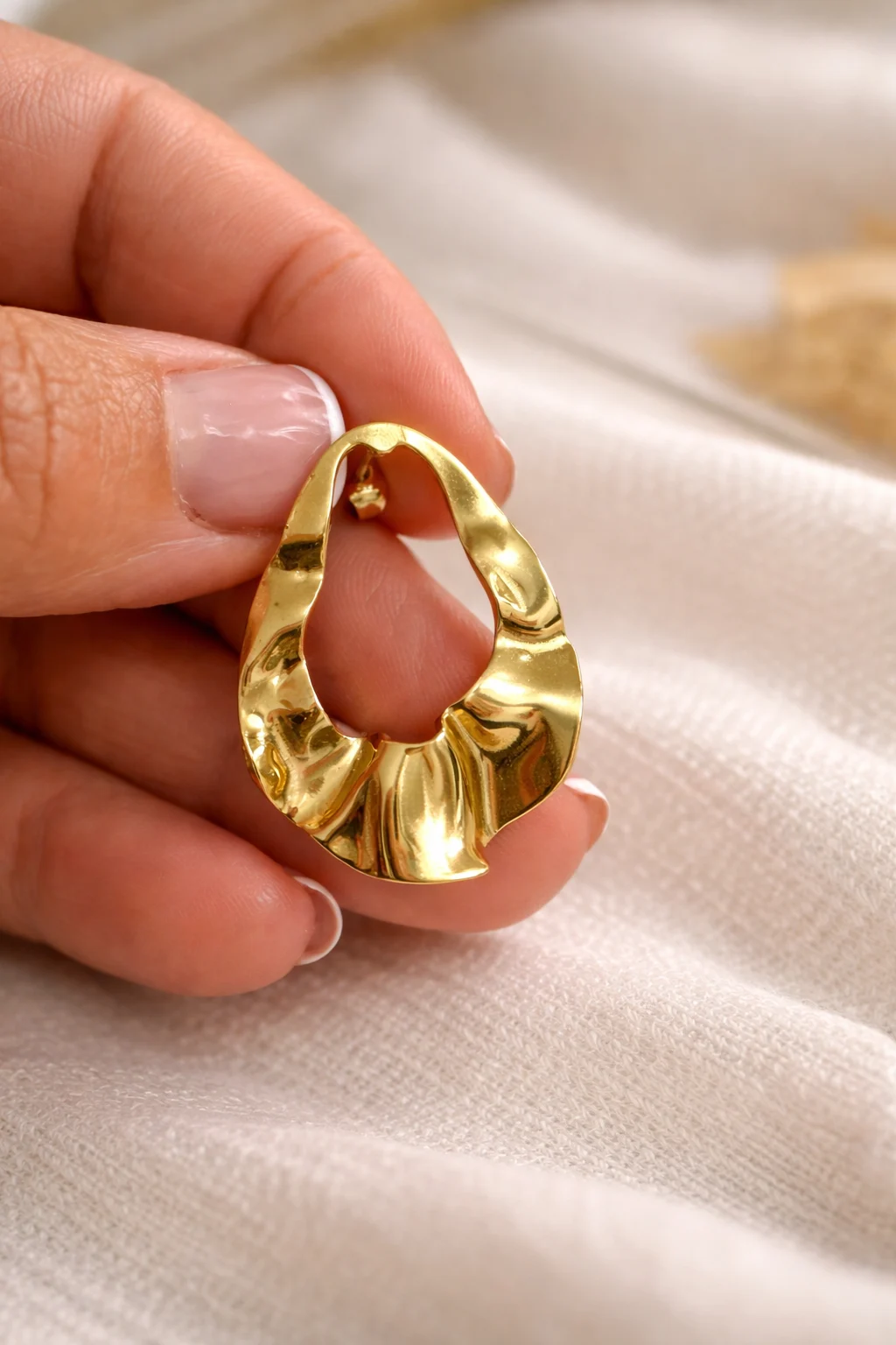 Pendientes dorados con forma ondulada que aportan movimiento, luz y un estilo moderno y elegante