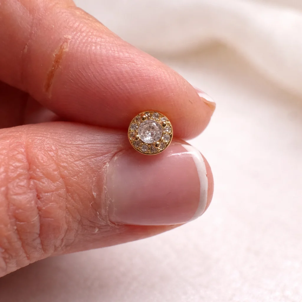 El Piercing Nexa Halo combina elegancia y funcionalidad en una pieza pensada para el día a día. Su diseño circular con circonita central, rodeada por un delicado halo de brillo, aporta luz sin resultar excesivo, manteniendo una estética minimalista y sofisticada.