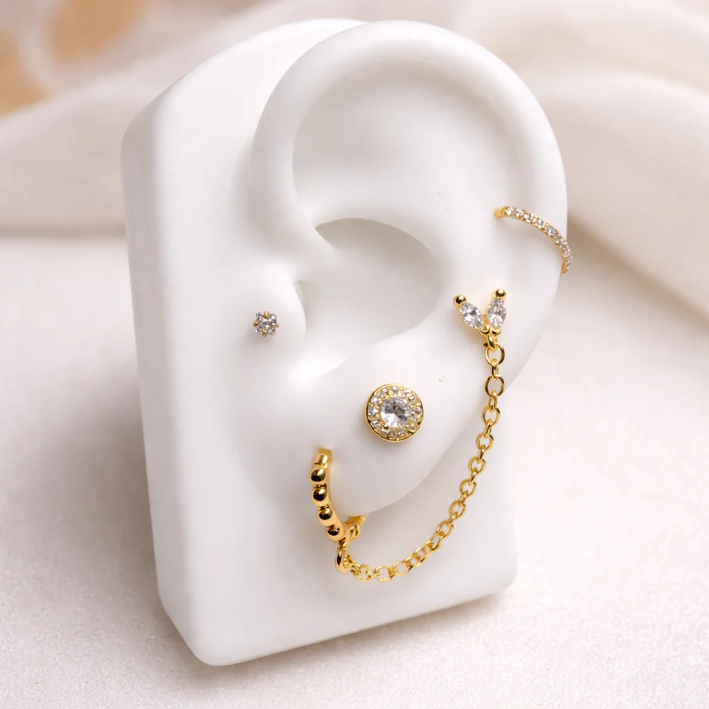 Gracias a su sistema de rosca trasera (flat back), ofrece una sujeción más segura y cómoda, evitando molestias al dormir o al llevarlo durante largas horas. Es una opción perfecta tanto para lóbulo como cartílago (helix, tragus, flat…), adaptándose a diferentes estilos y combinaciones.