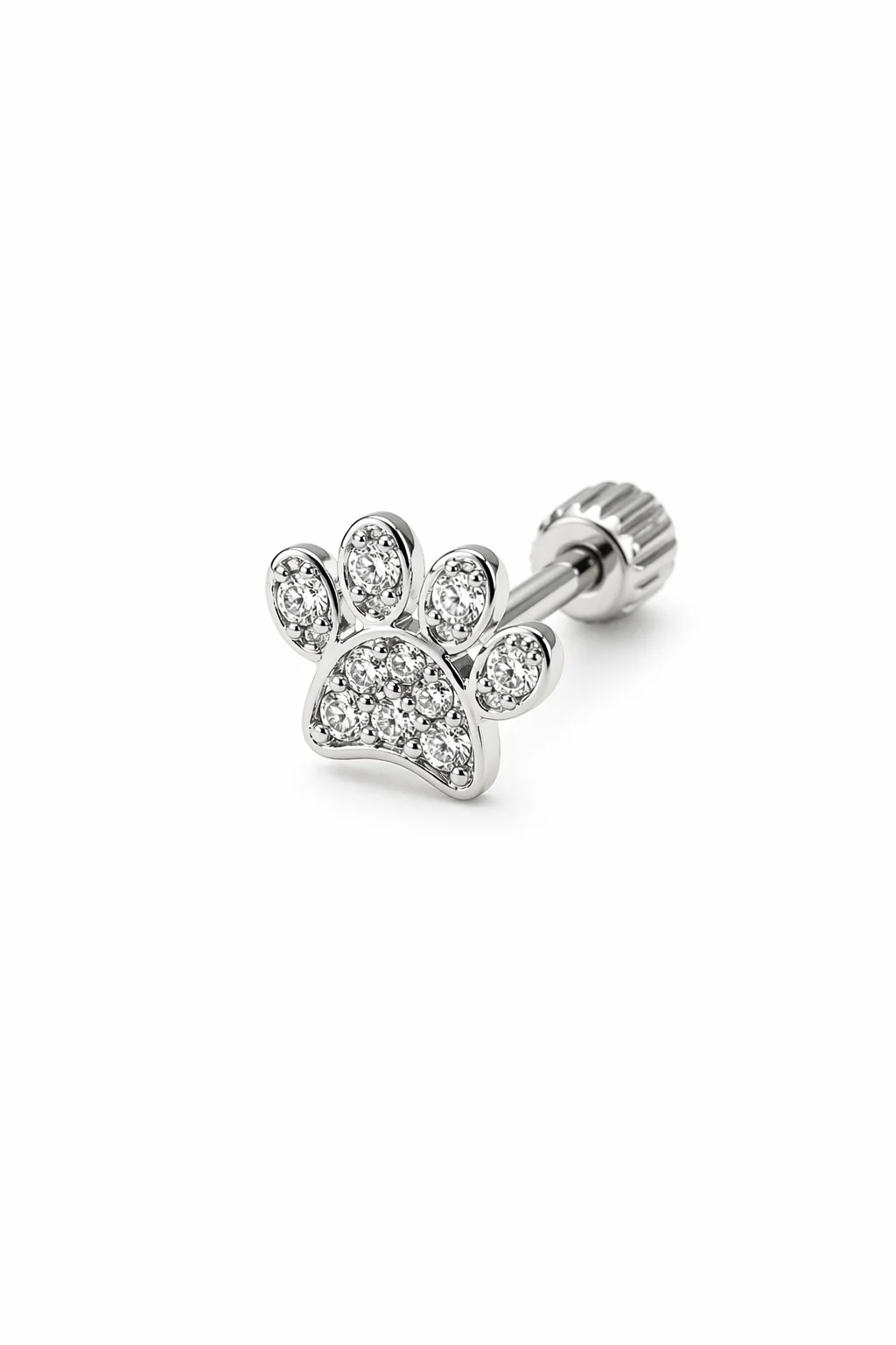 Piercing mini con diseño de huella y circonitas, elegante y discreto.