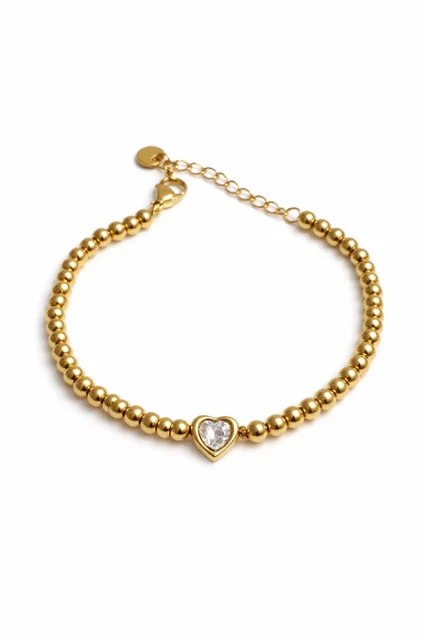 - Pulsera Corazón Alba de acero inoxidable con delicadas bolitas y diseño de corazón.