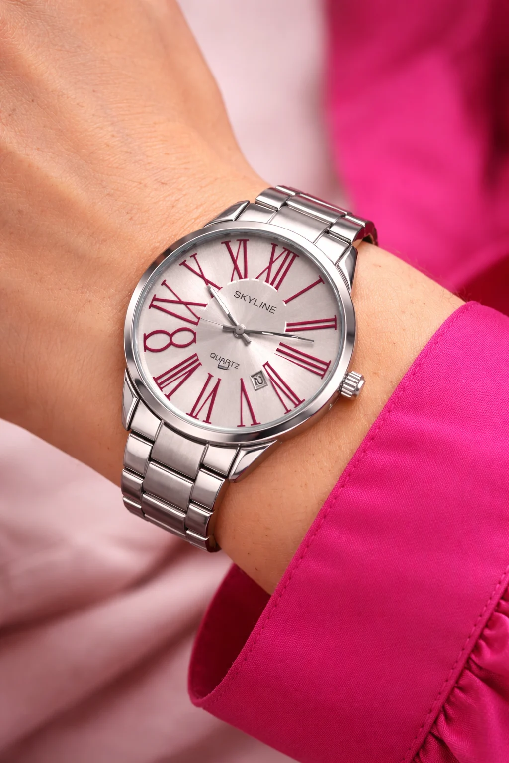 El Skyline Roma Steel es perfecto para quienes buscan un reloj elegante, versátil y fácil de combinar con cualquier estilo, desde un outfit casual hasta un look más formal.
