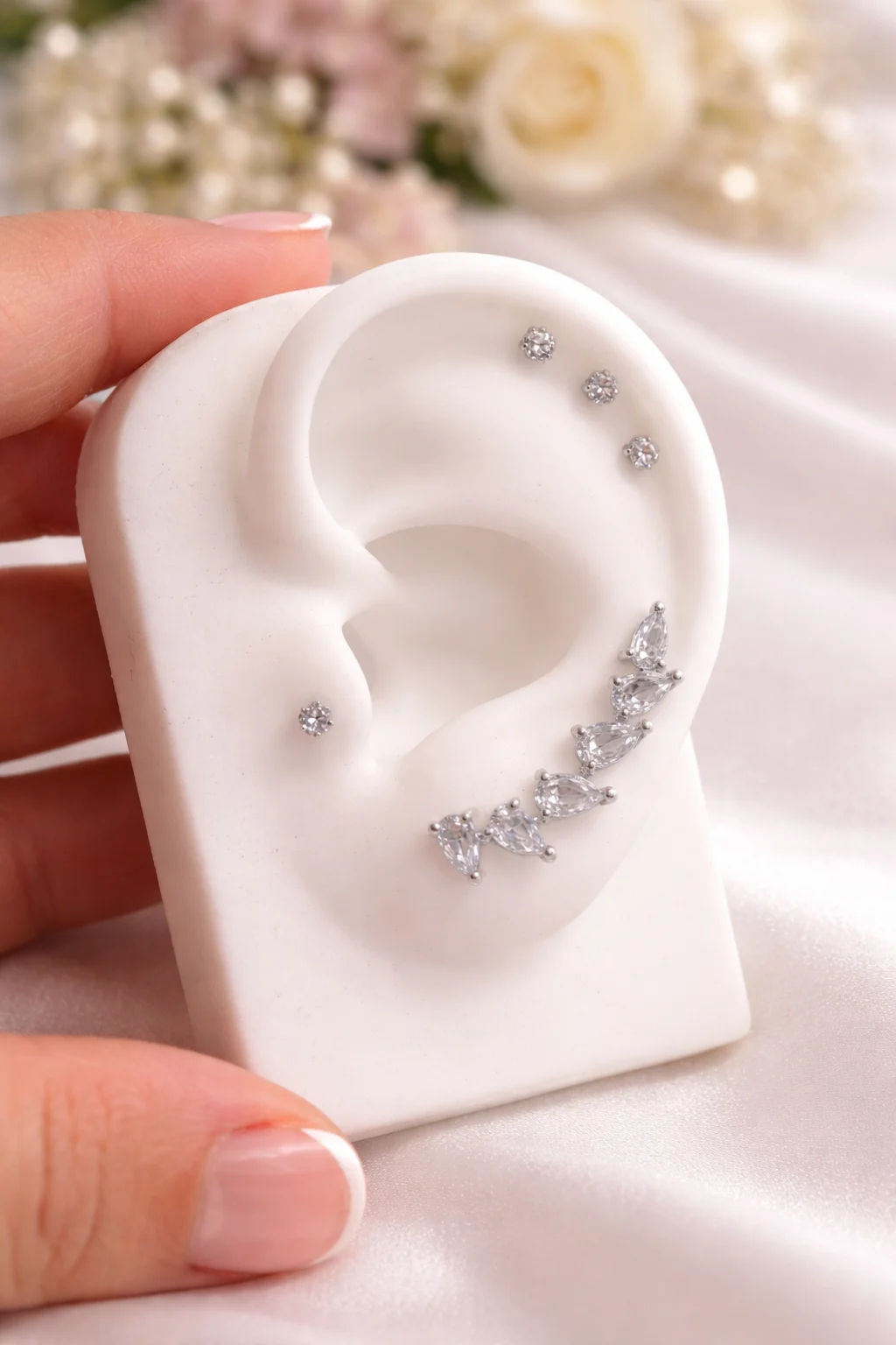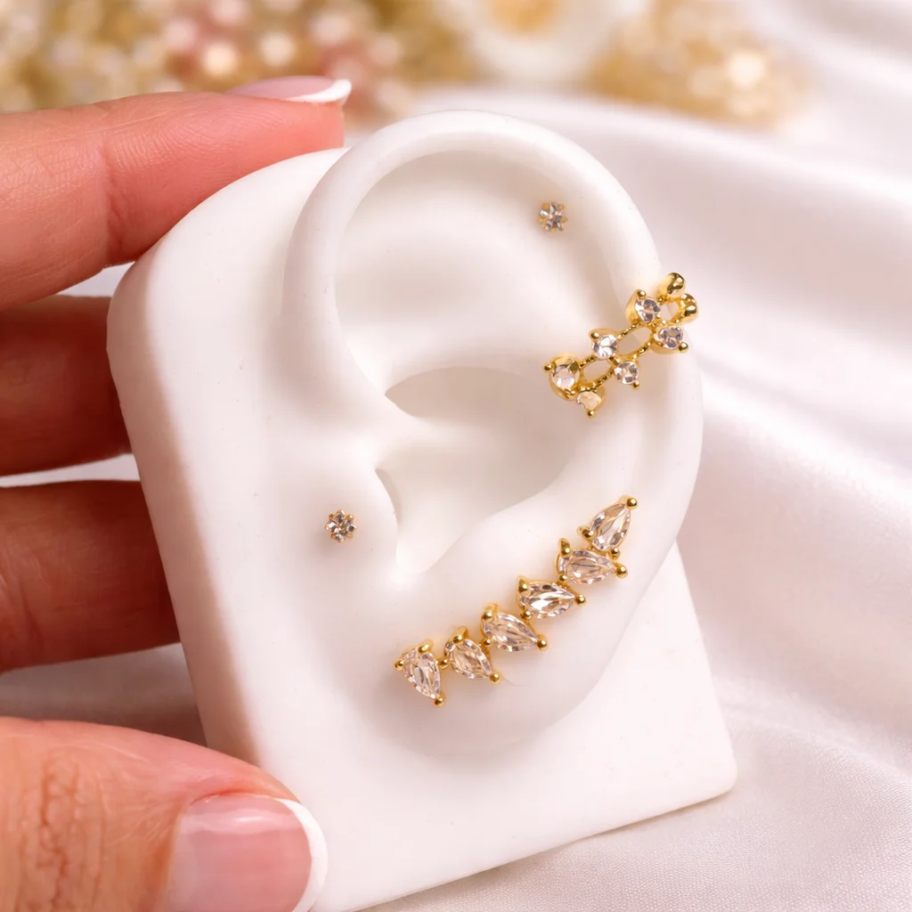 - El trepador Aura combina brillo y elegancia en un diseño delicado que sigue la forma de la oreja.