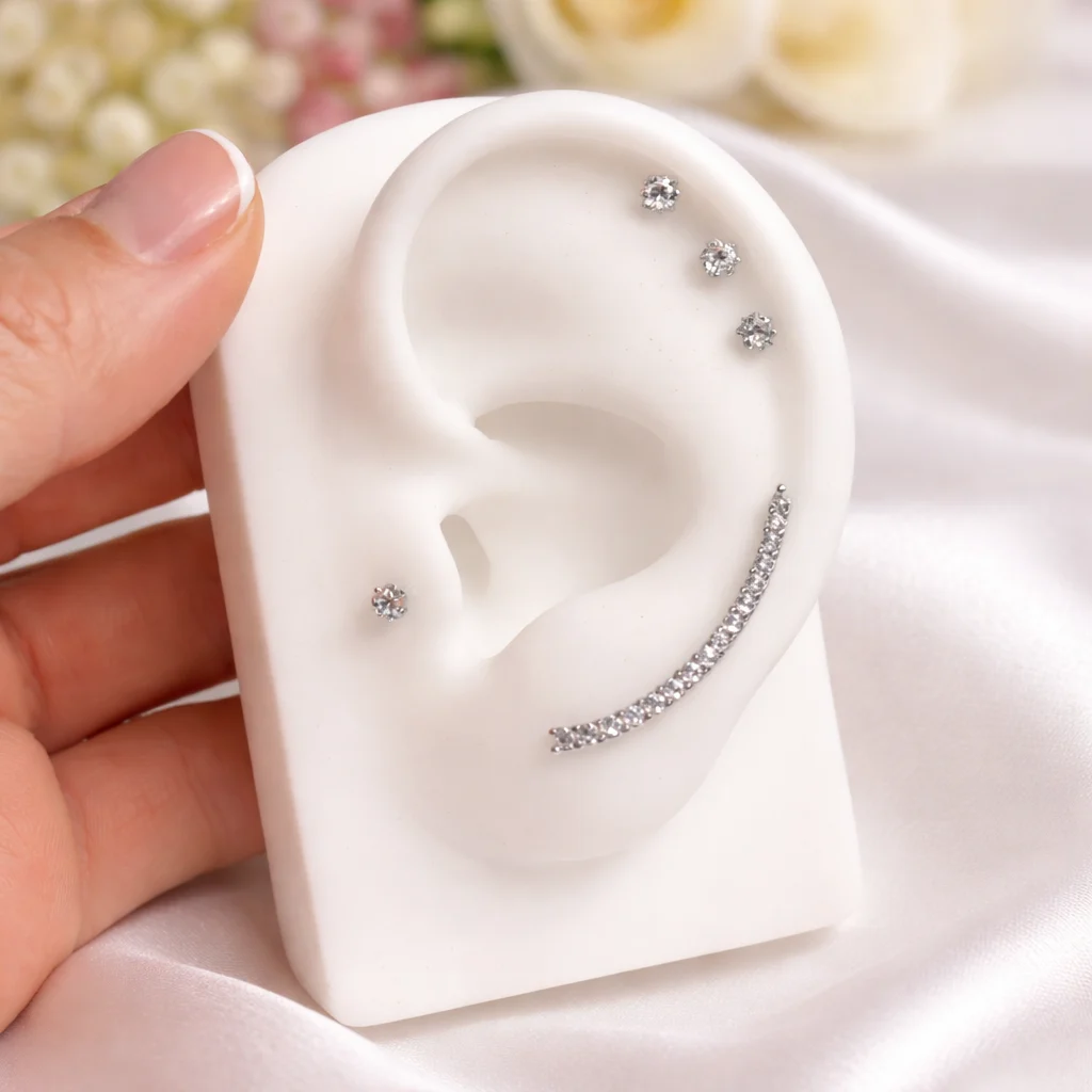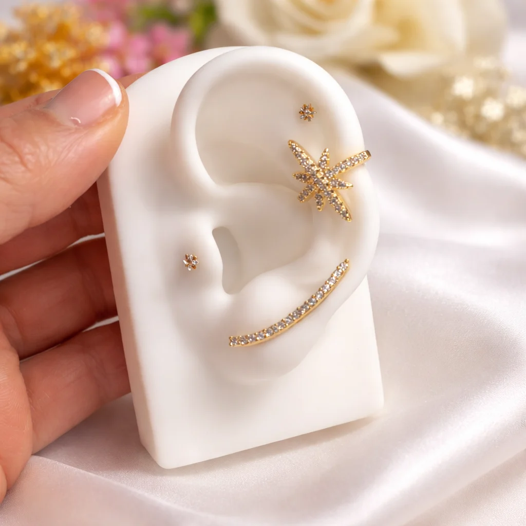 Los Trepadores Nova destacan por su diseño luminoso con circonitas que recorren la oreja creando un efecto elegante y moderno. Disponibles en dorado y plateado, son cómodos, resistentes y perfectos para el día a día.
