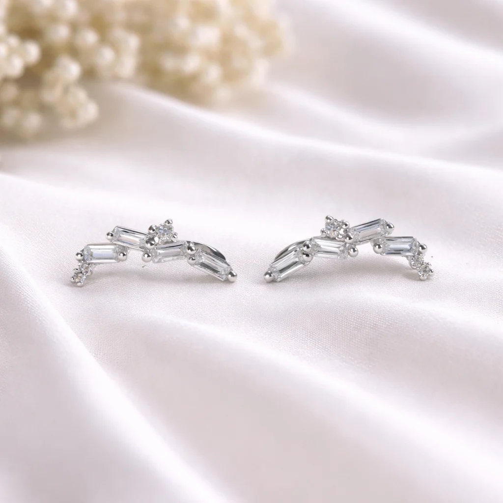 El pendiente trepador Pure destaca por su diseño delicado y luminoso, compuesto por circonitas blancas que siguen una suave línea curva adaptándose perfectamente al lóbulo.